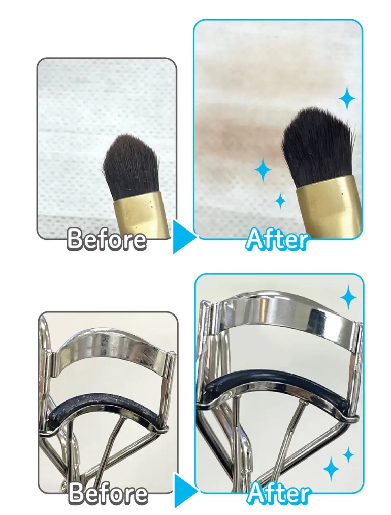 そんな悩みを解決してくれるのが、水洗い不要でサッと使える「メイクツールクリーナーシート」です。