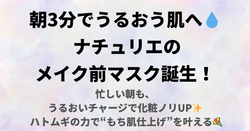 【ナチュリエ新商品】朝3分で“うるおいチャージ”✨ハトムギ メイク前マスク登場!化粧ノリ&もちが変わる💐